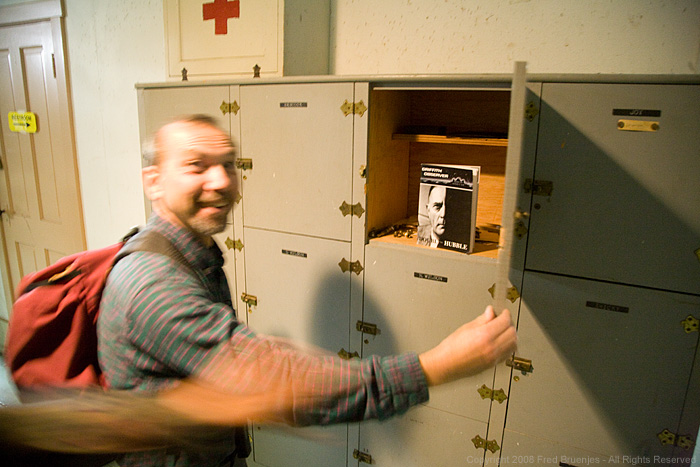 John pointed out that Sky and Telescope would be publishing an article on the historic 60" later this month, on the 100th anniversary of it becoming the largest telescope in the world. It held that distinction until 1917 when the Mt. Wilson 100" was completed. John said, " you guys have to come look at the lockers!" It seems that the names on the basement work lockers hadn't been changed since they originally read "Hubble", "Zwicky", etc... Someone had politely installed a book in Mr. Hubble's locker for him. We six lucky observers enjoyed amazing views through a moonlit sky of some breathtaking objects. It took more time to open the dome slit than to find any of the objects we hunted for. The moonlight offered some challenges in locating objects that would show well and that were at the right declination window for the telescope. Tom was an absolute ace at centering each object perfectly into the eyepiece each time. Dave stopped in a few times between exposures to share stories of high alititude obsering. It seems Jen and Dave both know the effects of diamox on the observer very well. Tom boasted that the scope was impervious to the impact of an observer climbing on it. So out of curiosity, Jen knocked on the eyepiece plate and saw no movement. She stomped her foot on the telescope itself with not a jitter to the image. It was rock solid.