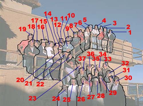 1.Rick Singmaster 2. Massimo Volante 3. Bill Feeley 4. Tom Martinez 5. Scott Mitchell 6. Patricia Henkel 7. Beth Goode 8. Larry Goode 9. Carlyn Kline 10. Edmund Kline 11. John Phelps 12. Betty Valencia 13. Andres Valencia 14. Nancy Clark 15. Anita Drezdzon 16. William Drezdzon 17. Andres Valencia 18. Edgar Cortez 19. Raymond Brooks 20. Wayne Clark 21. Johnny Allen 22. Pat Allen 23. Marlene Bopp 24. Ivan Blanco 25. Patrick Donnelly 26. Jim Russell 27. Jen Winter 28. Vic Winter 29. Erin Dykstra 30. Stanley Blanco 31. Gail Martinez 32. Gloria Martinez 33. Roger Curry 34. Dean Turnipseed 35. Sharon Goode 36. Michael Kauper 37. Thane Bopp - (Not Pictured - Gonzalo and Arturo Vargas)