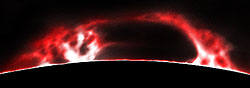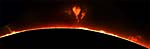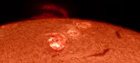 Photographed with rear-mounted DayStar Filter with custom "YellowScope" dedicated solar telescope. Configured with RG610 Red glass 4.75" F/15 objective, 2X barlow and 35mm camera mounted prime focus at approximately 3600mm EFL. Using Kodak Technical Pan film, developed with Rodinol, scanned in monochrome, then colorized. |