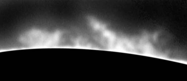 Photographed with Kodak Tech-Pan 2415 black & white film and a prototype prominence hydrogen alpha filter, active regions and prominences dominated the solar disk on the afternoon of October 18, 2000.