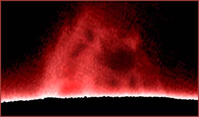 A huge solar prominance rises above the limb of the sun