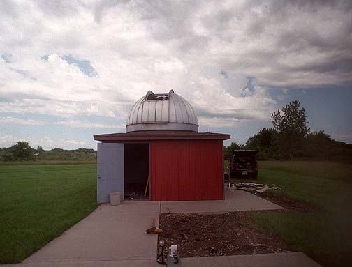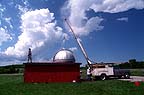 With the dome secured to the ground, it awaits transport to a holding area. The building awaits the bulldozer! Construction on the new observatory is expected to begin later this year.