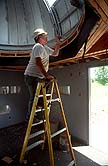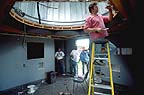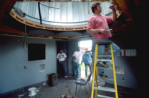 Bob Haler and Tom Martinez stand amid the gutted interior of the observatory.