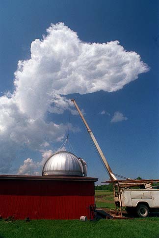 Thunderstorms began building in the skies as the dome was prepared for lifting.