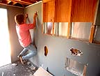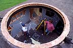 Vice-President Bob Haler works at removing a layer of silicon from the dome ring.