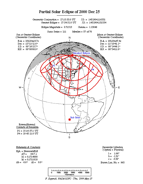 On Christmas Day, December 25, 2000, a partial solar eclipse occurred and was visible from Kansas City and across the United States, Canada and parts of Mexico and Caribbean.