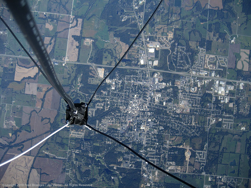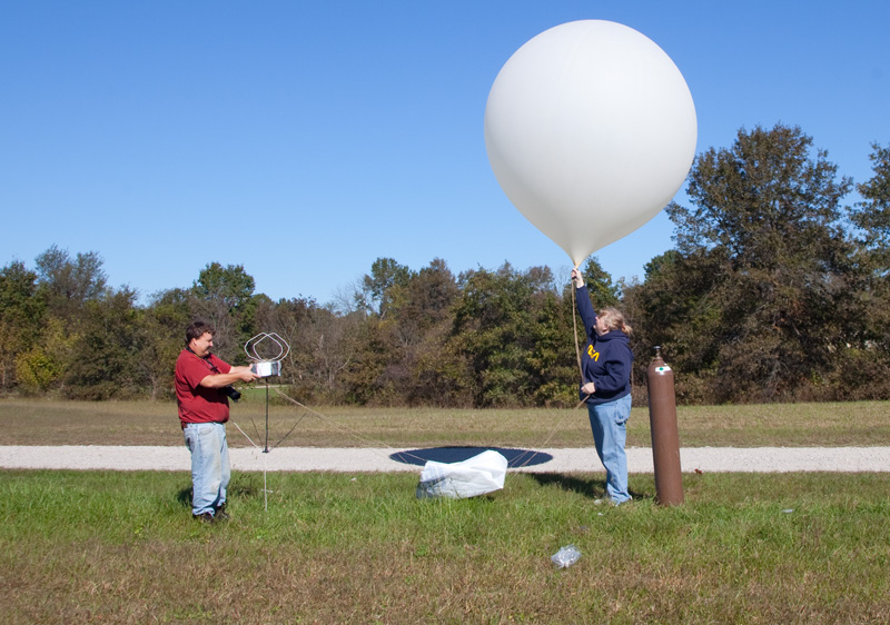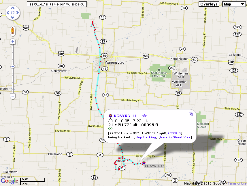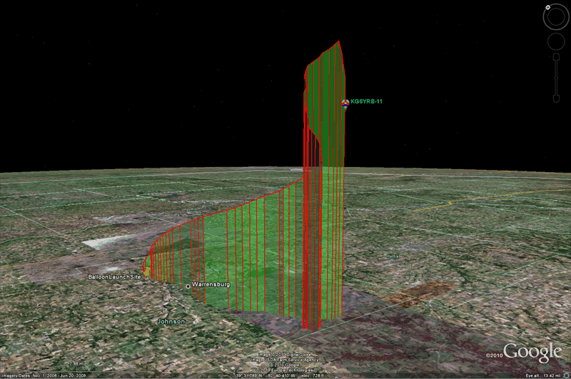 To keep life simple, we kept the balloon FAR 101 exempt. Working feverishly with only 3-4 hours of sleep a night, we finished the package in time for a launch on Tuesday October 5th, when the weather was forecast to be perfect, with clear skies, nice temperatures, and near zero winds anywhere in the atmosphere. Near Space Ventures' trajectory forecast was very useful in predicting where the balloon would go. We really didn't want to overfly the nearby Whiteman Air Force Base, home of the B2 Spirit stealth bombers...