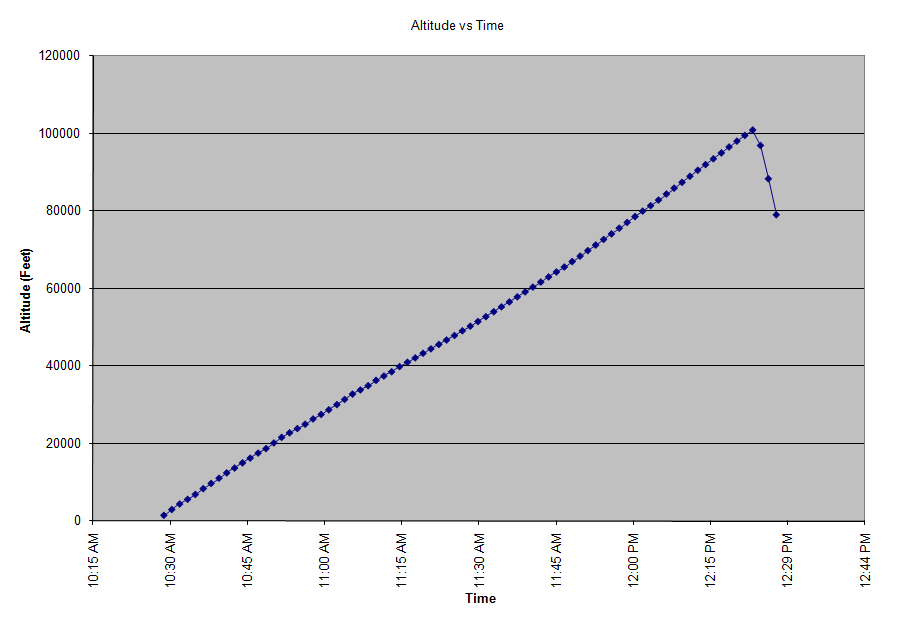 Monitoring the telemetry received direct from the balloon, we were soon overjoyed to see that we had reached over 100,000 feet!