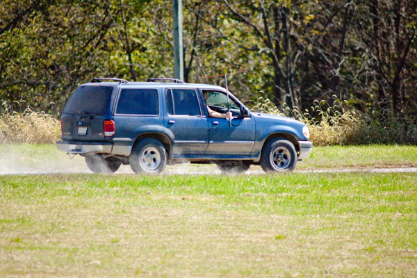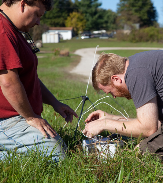 The chase team speeds away to track the balloon with a yagi antenna made of 12 ga. romex.