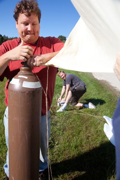 Jen releases the balloon. This first attempt failed to lift off, we had not filled the balloon enough.