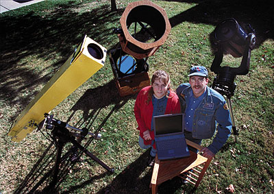 Vic & Jen with a few of the telescopes they use to photograph the heavens. | |